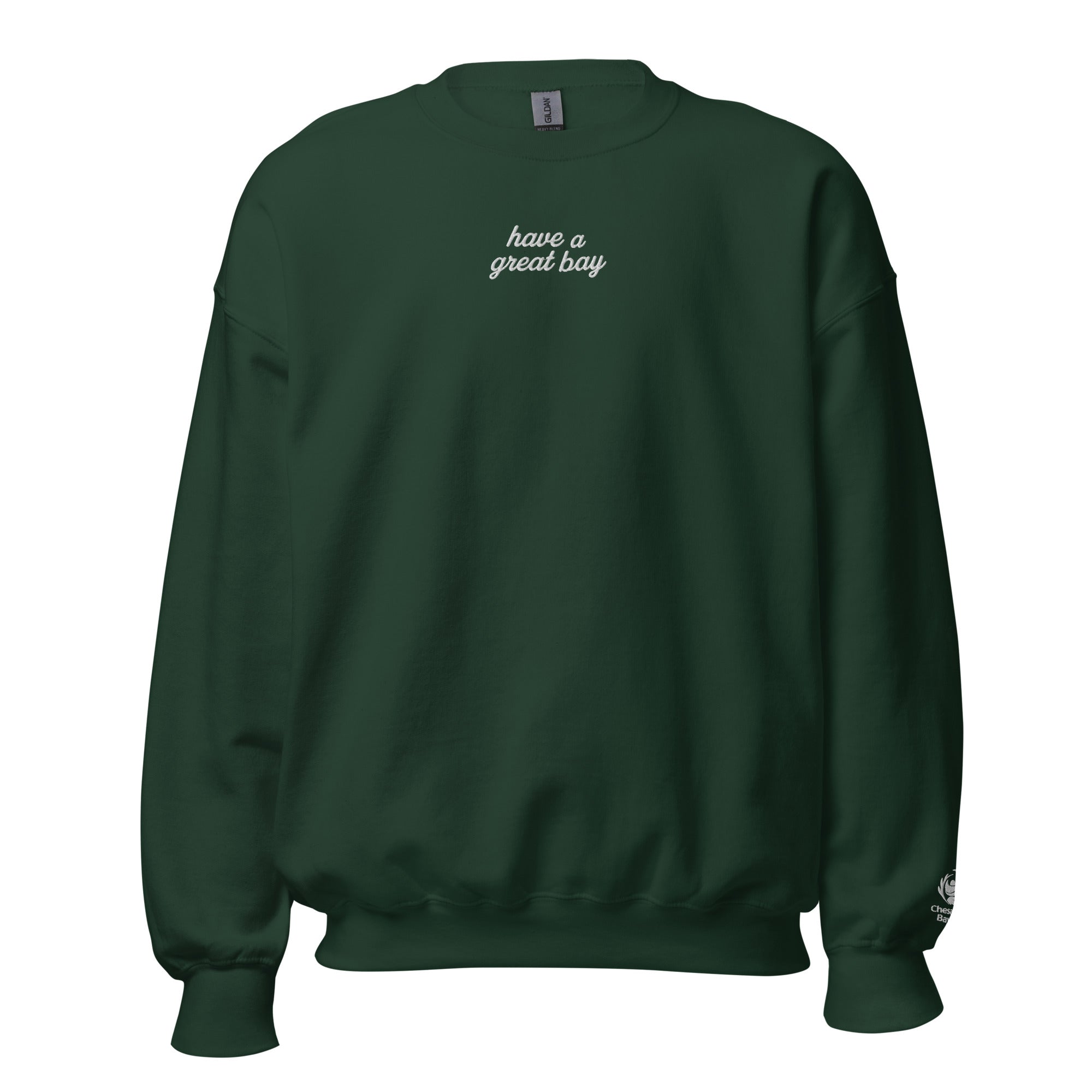 Celebrate the Chesapeake Bay and your connection to land, water, and community with this cozy sweatshirt. It features the catchy phrase “Have a Great Bay.” This versatile layer is perfect for cool mornings, outdoor adventures, or everyday wear. Designed for comfort, style, and purpose, wear it proudly and support a brighter future for our waterways.